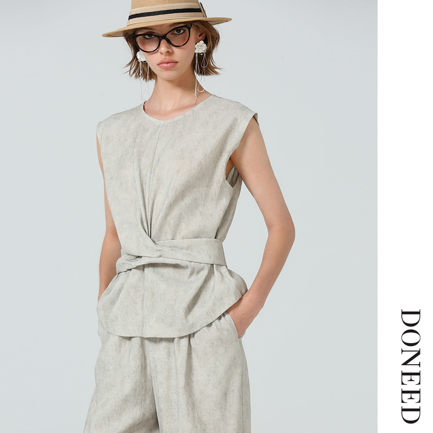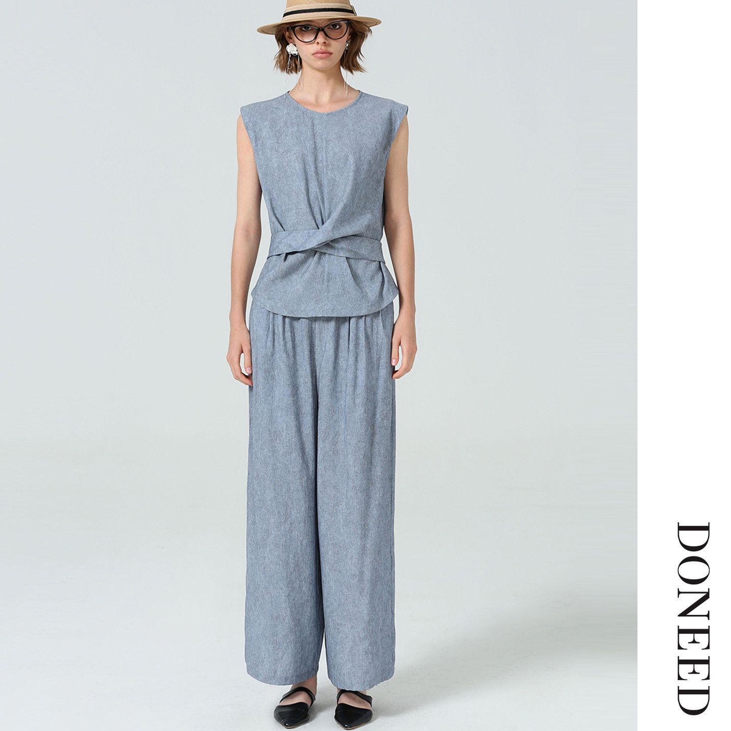 扎染印花套装 女 智性圆领扭结系带收腰上衣阔腿长裤 DONEED2026夏款由