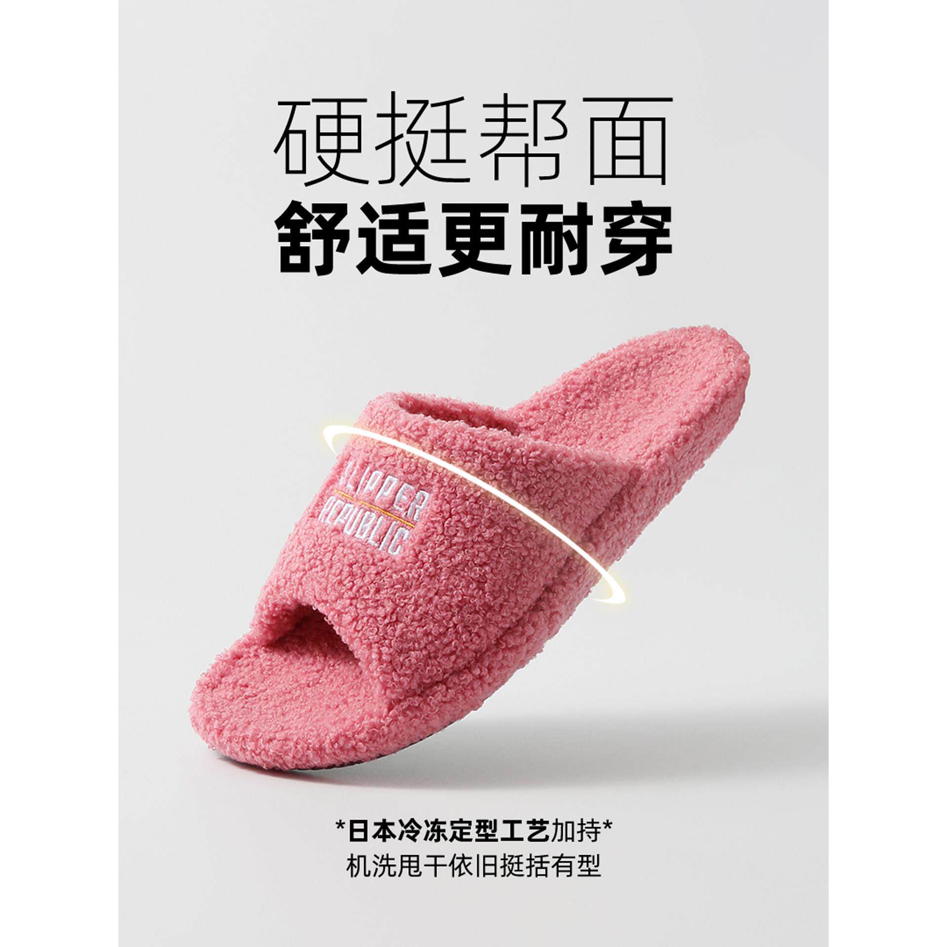 女家居室内情侣防滑木地板盆底家用男士 开口毛绒静音棉拖鞋 秋冬季由