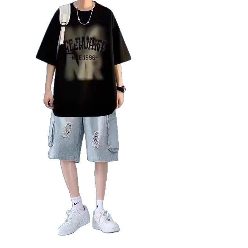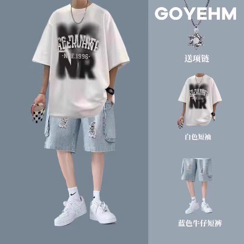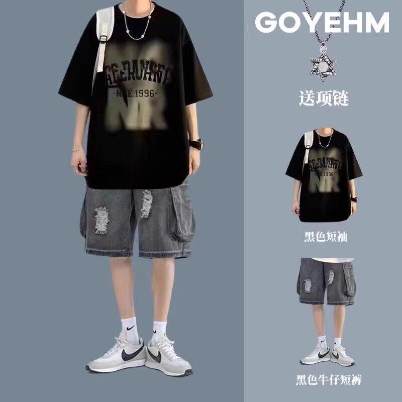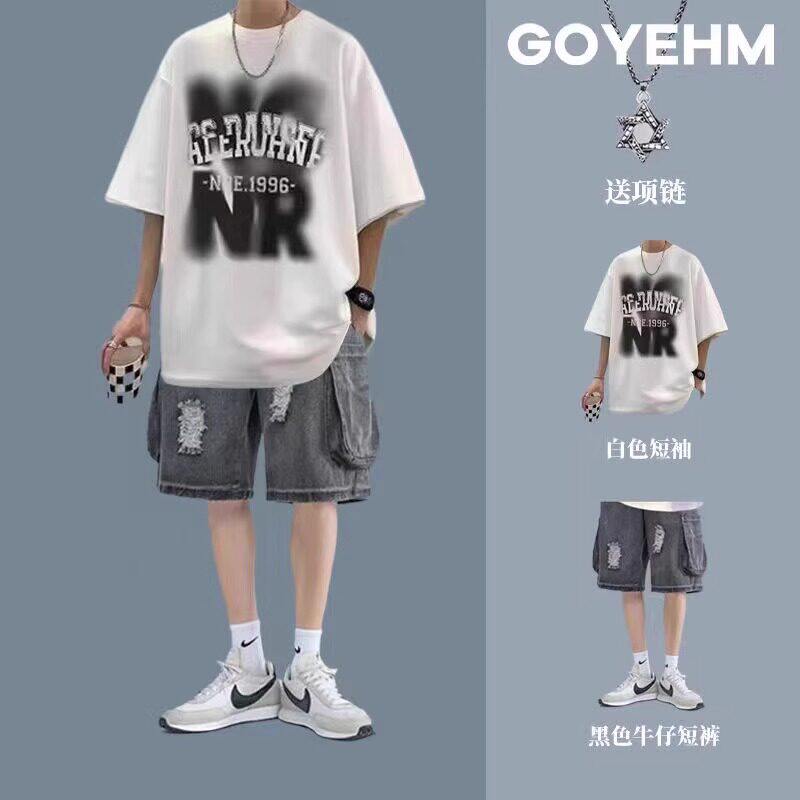 libetter夏季 t恤套装 男生牛仔短裤 潮流一套搭配痞帅气夏天 短袖