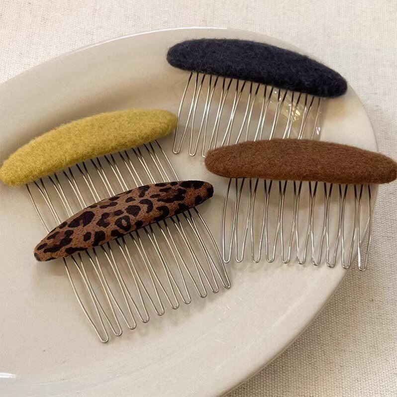 高端气质公主头发刘海夹梳碎发 韩国复古毛呢倒插梳发夹女2026新款由