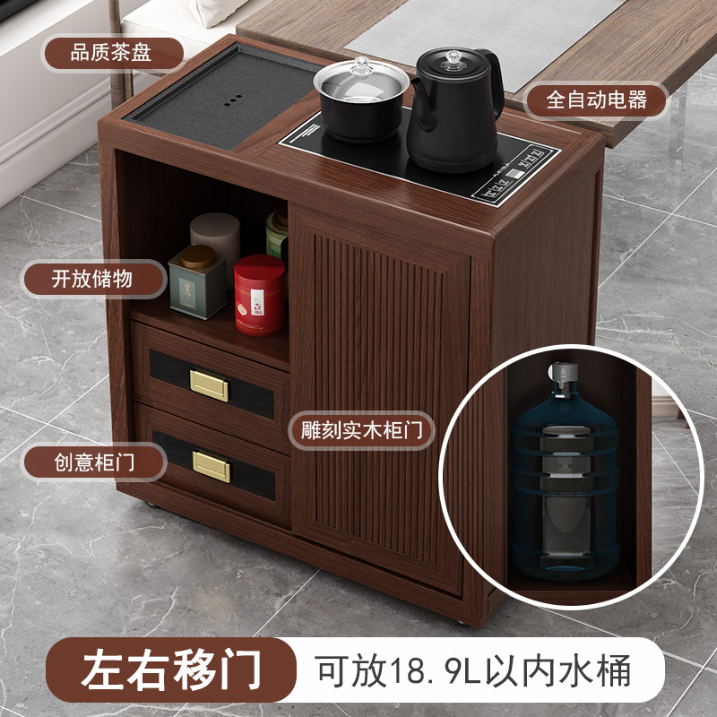移动茶桌家用小茶台客厅茶车阳台茶几柜烧水壶一体茶水柜 实木中式由