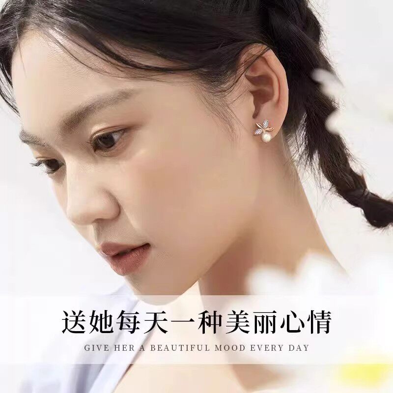 999纯银天然淡水珍珠耳钉女防堵针养耳洞小耳环高级感耳骨钉耳饰