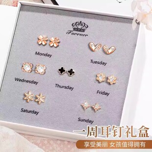 爆款 2026情人节生日礼物送女生 一周耳钉女银针耳饰高级套装
