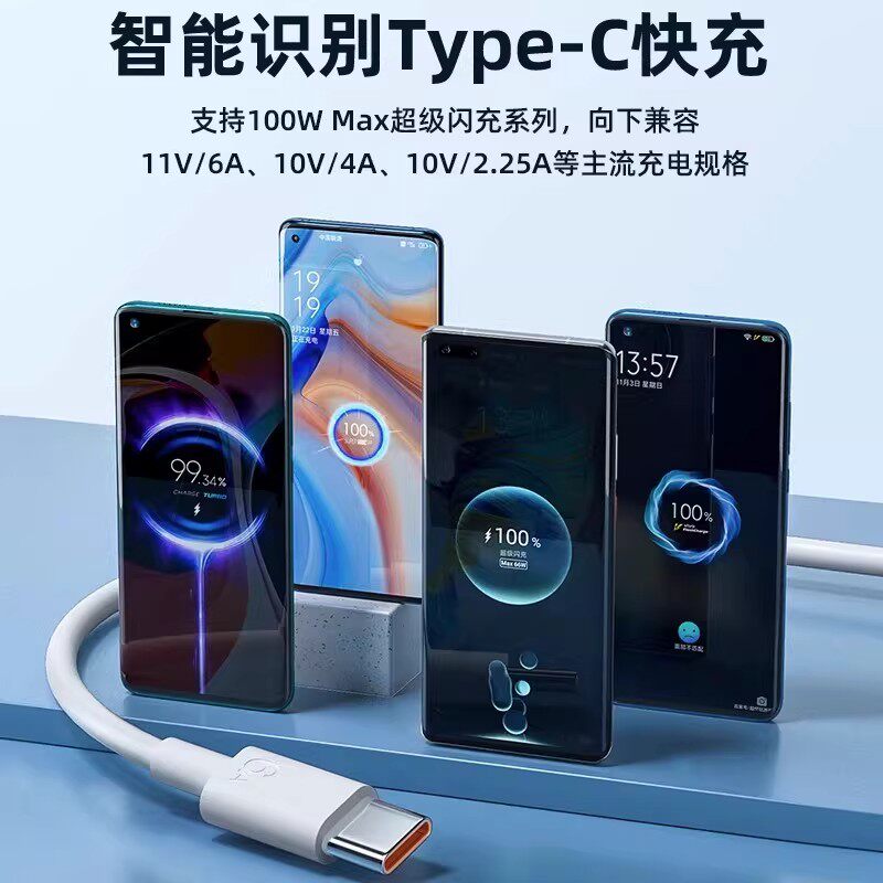 9原8荣耀手机装 简宿 40pro充电器线nova7 c适用华为p30p40小米9安卓mate60 120W超级闪充 6A数据线Type