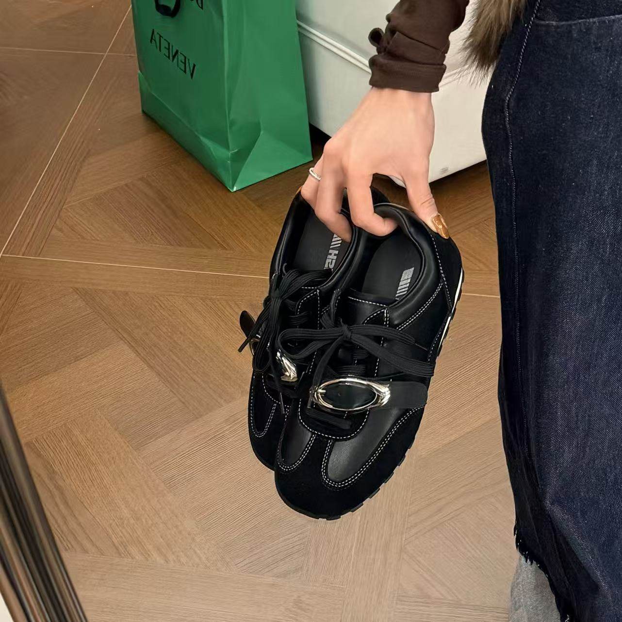 女款 H55女鞋 德训鞋 休闲方头厚底经典 解构波卡尔美学2026春季 新款