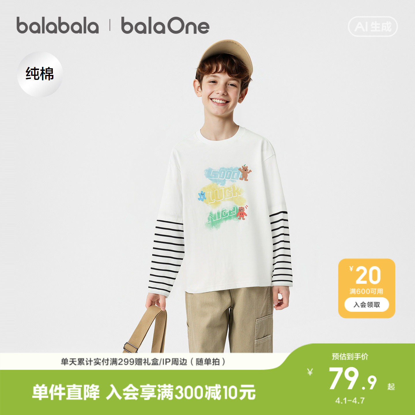 2026春季 巴拉巴拉童装 儿童长袖 t恤男童打底衫 假两件上衣潮酷 新款