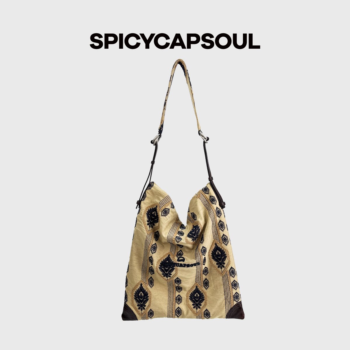 SpicyCapSoul池金物小众定制麻绳刺绣单肩斜挎包托特包 芦苇由