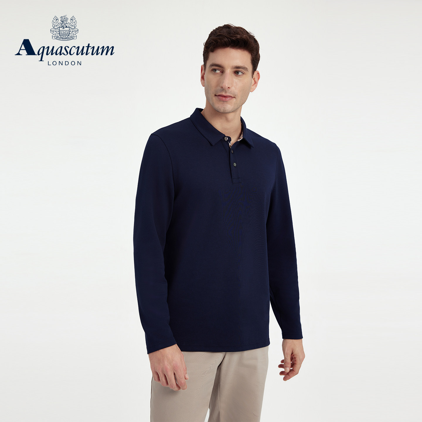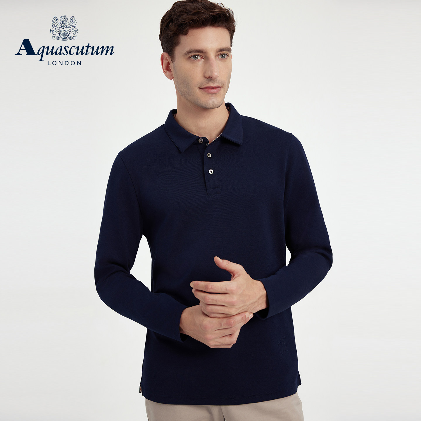 Aquascutum 男简约时尚 长袖 T恤商务上衣POLO通勤 雅格狮丹秋冬新品由