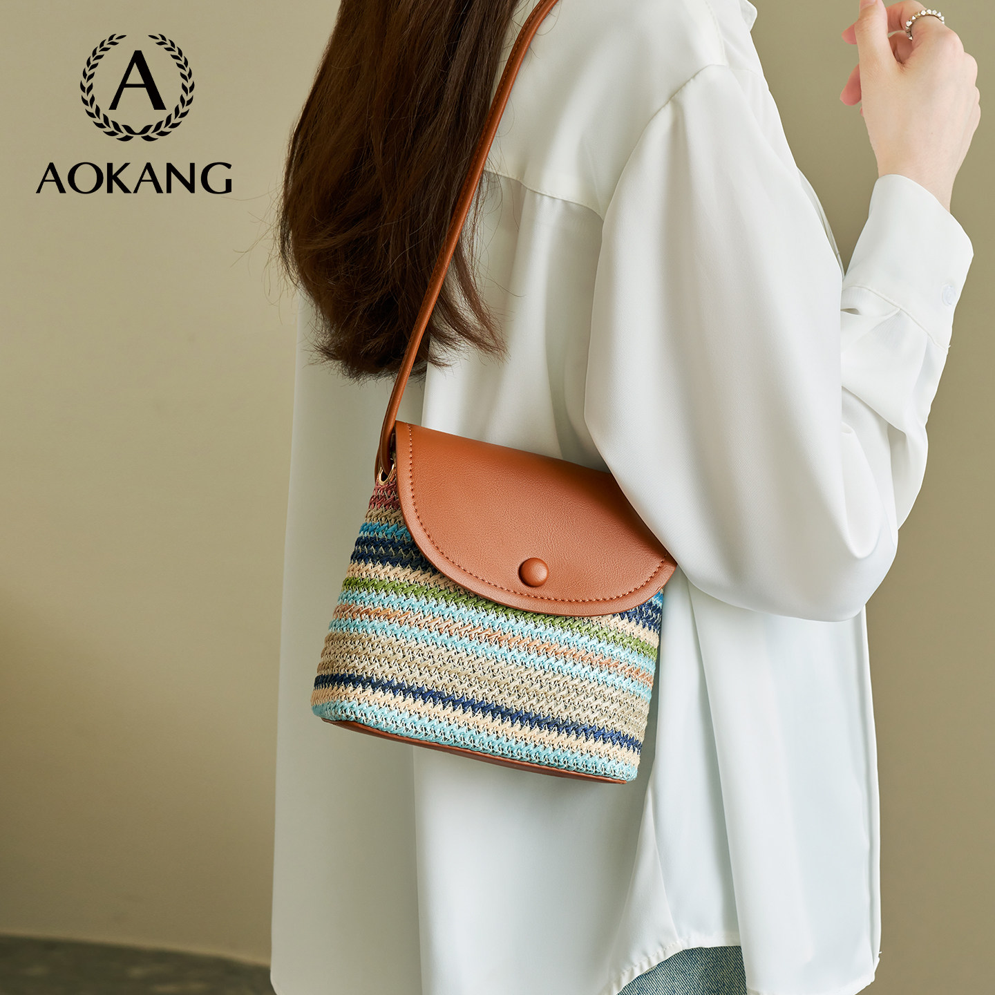 包包女士大容量编织包通勤高级斜挎包单肩小包 奥康手机包2025新款