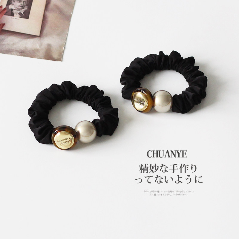 川野法式 优雅简约橡皮筋扎头发头饰发饰 豹纹圆形珍珠小肠发圈新款