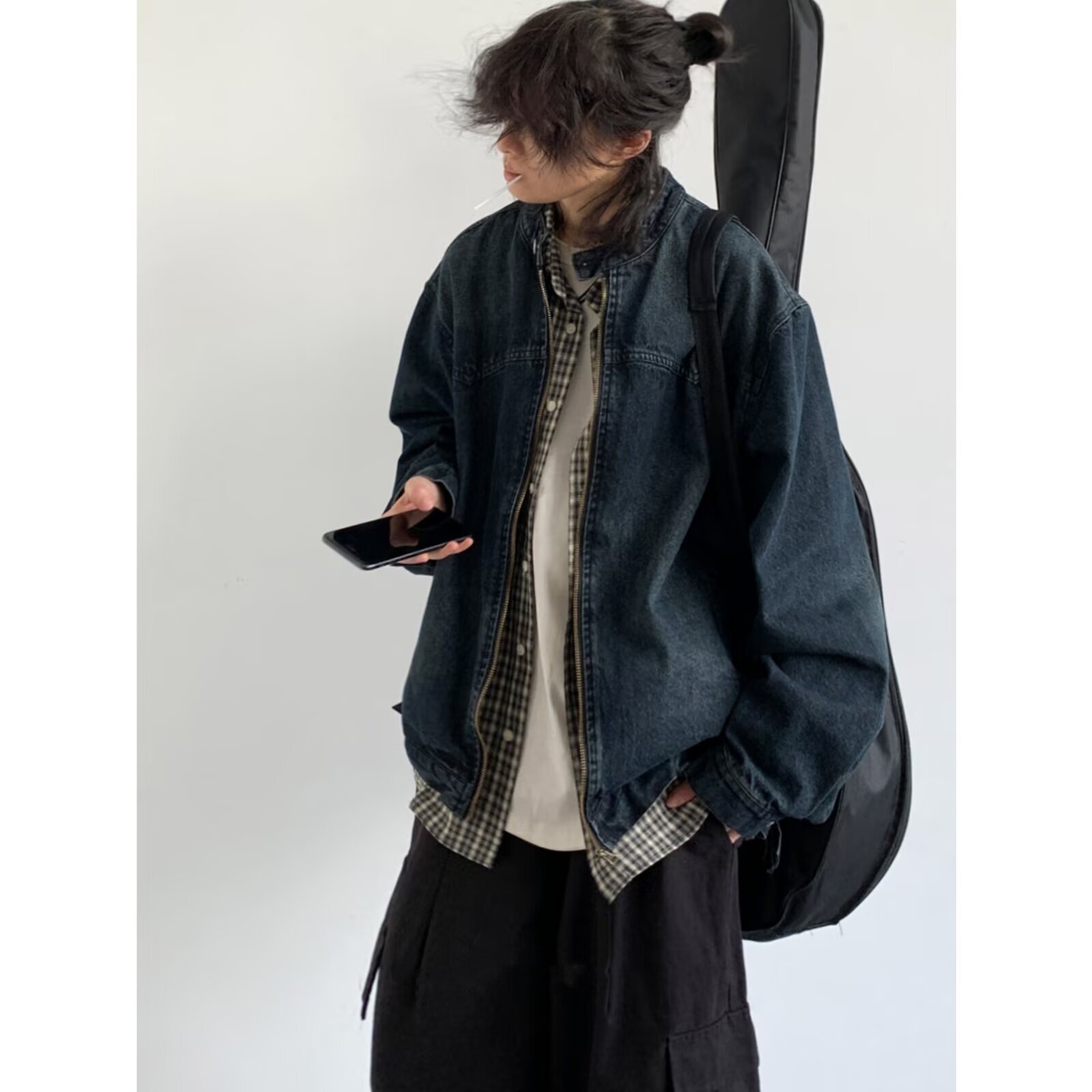 F383 复古解构质感牛仔外套宽松廓形修身 显瘦工装 夹克女 2026美式