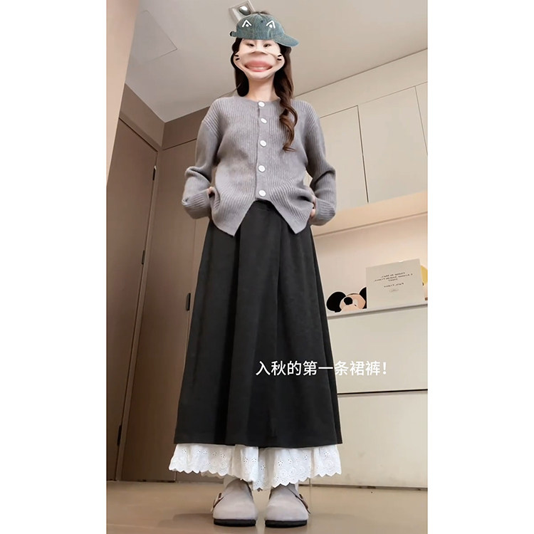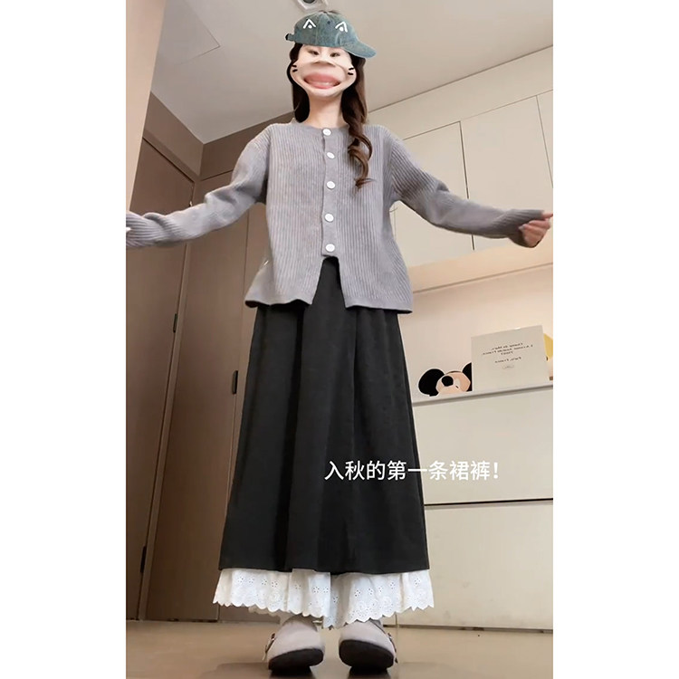 为您提供商品时尚 深灰色慵懒宽松阔腿裙裤 女秋冬季 2025新款 减龄蕾丝拼接阔腿裤的详细介绍,