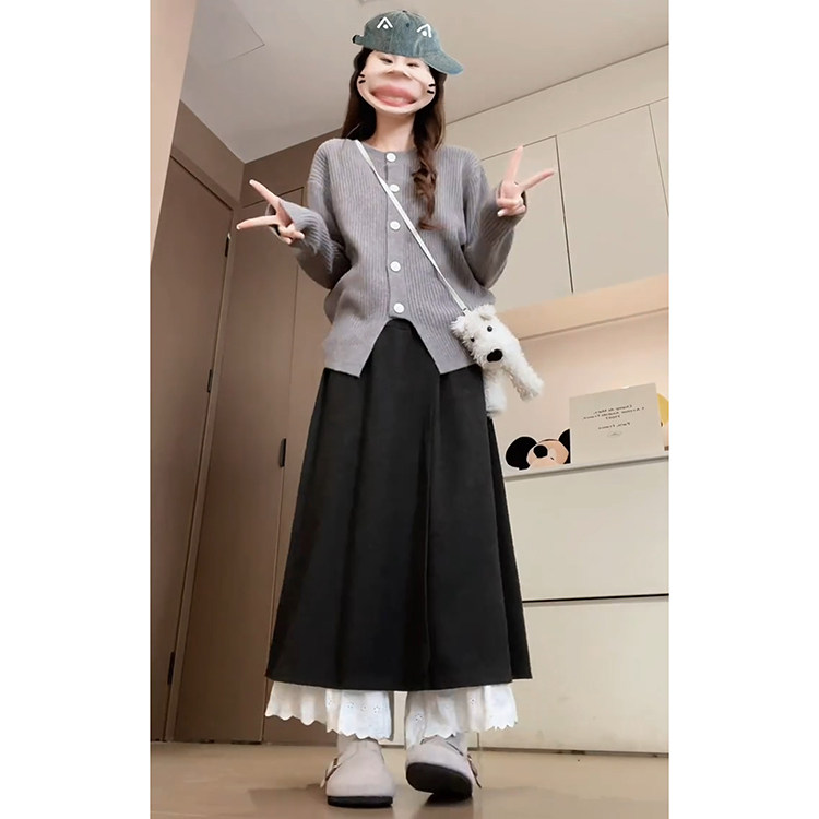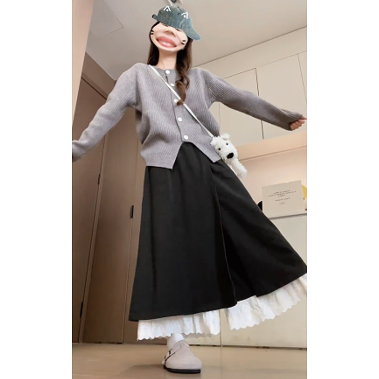 时尚 深灰色慵懒宽松阔腿裙裤 女秋冬季 2025新款 减龄蕾丝拼接阔腿裤由