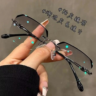 克罗纯钛黑框眼镜半框眼镜近视眼镜高级变色定制成品光学眼镜