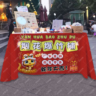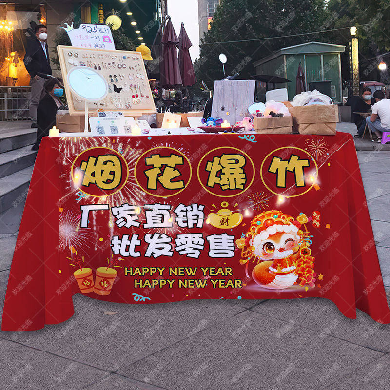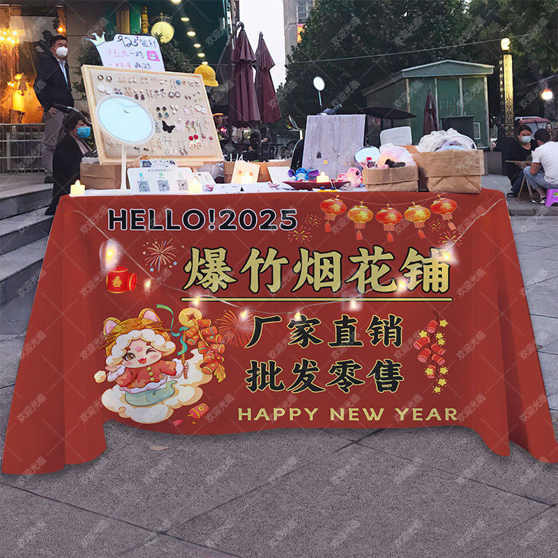 旦新年烟花爆竹摆摊广告布海报桌布集市夜市庙会摊招牌 2025蛇年元