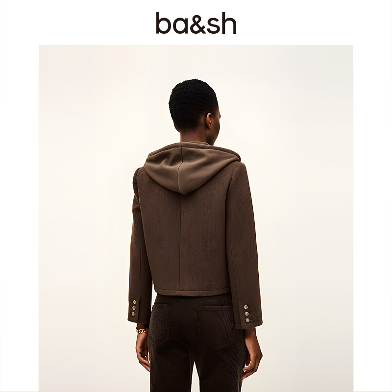 bash冬季 绵羊毛混纺连帽花呢小香风夹克正肩短外套女1H25MERR 法式