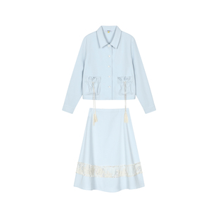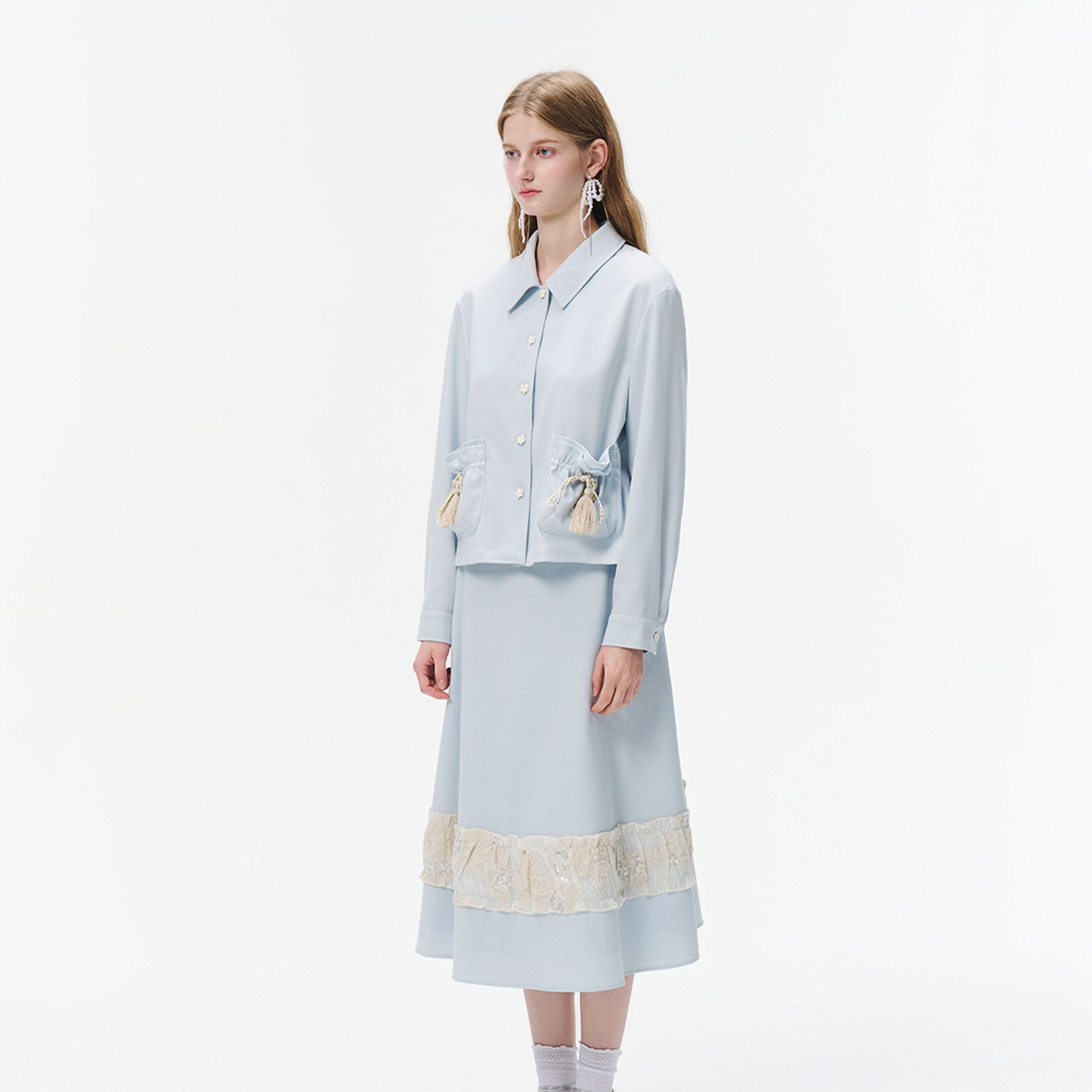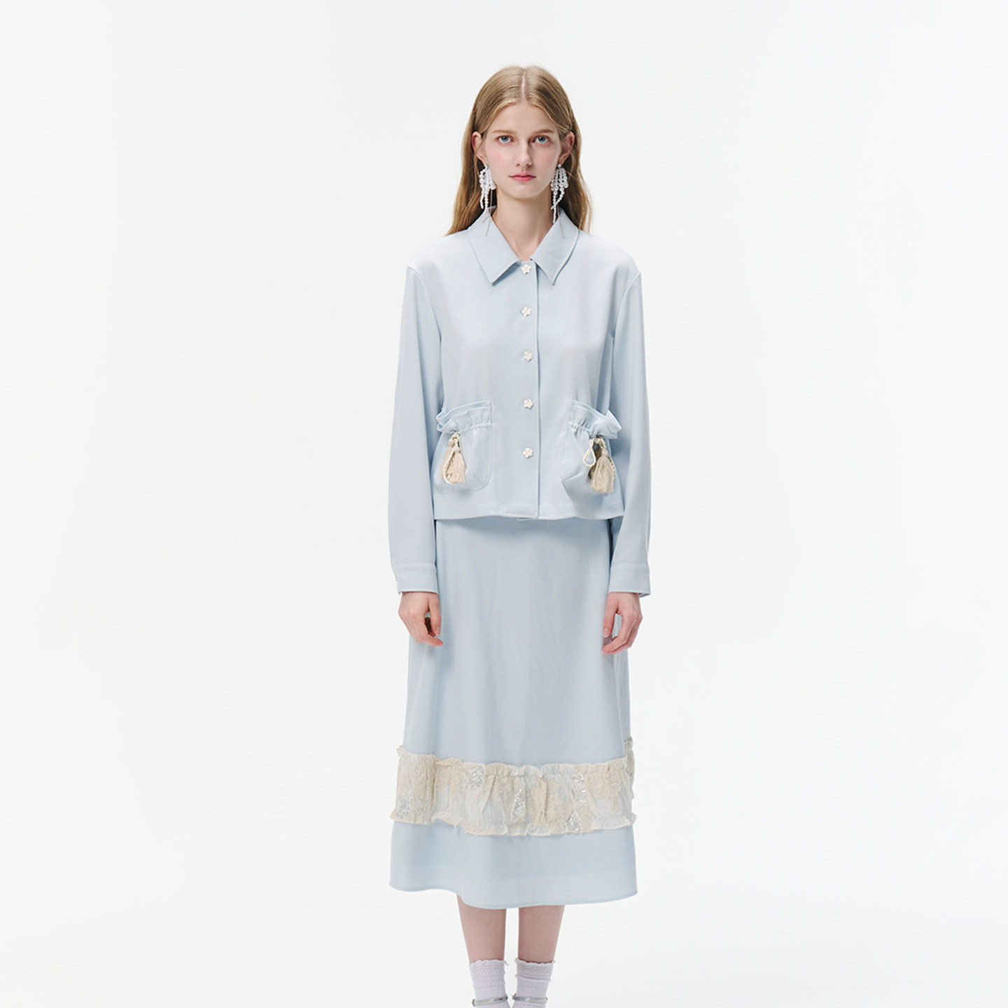 tanni新款 A字型衬衫 半身裙套装 TO31SH153A 简约气质蕾丝拼接衬衫由