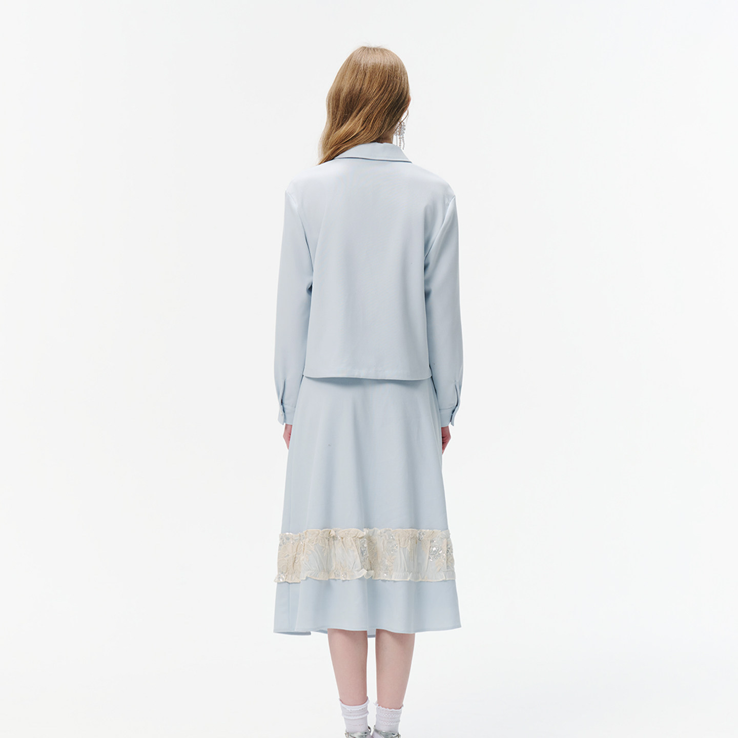 tanni新款 A字型衬衫 半身裙套装 TO31SH153A 简约气质蕾丝拼接衬衫