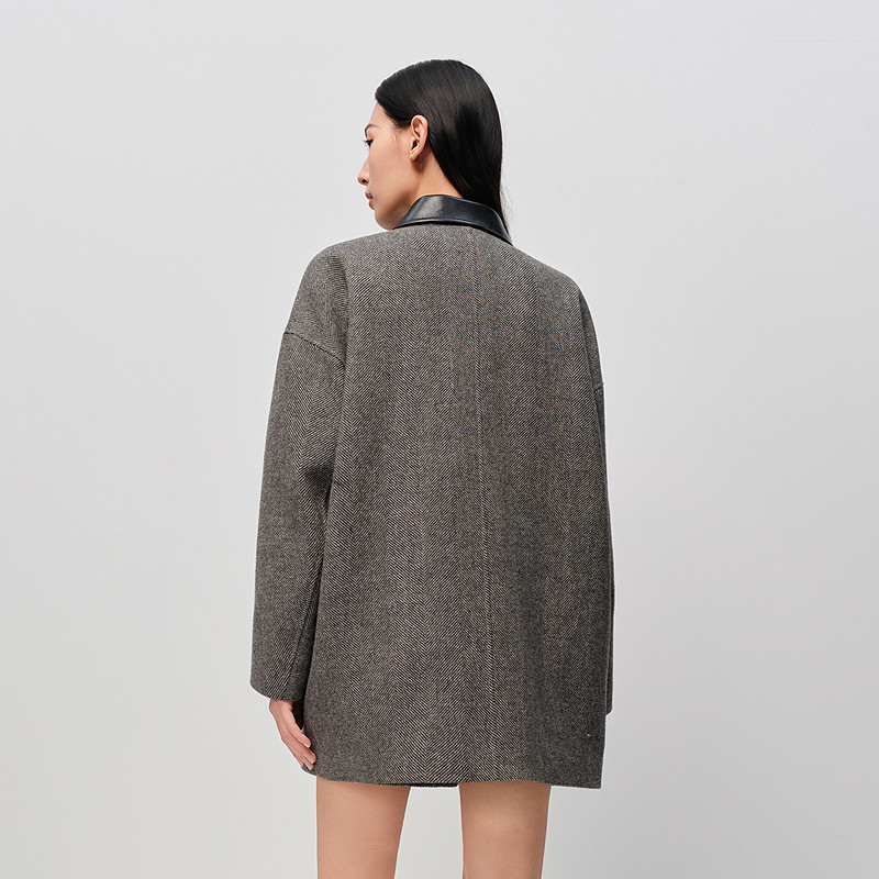 H·GENTEEL荷高2025新款 冬女人字纹经典 翻领毛呢外套 复古松弛由