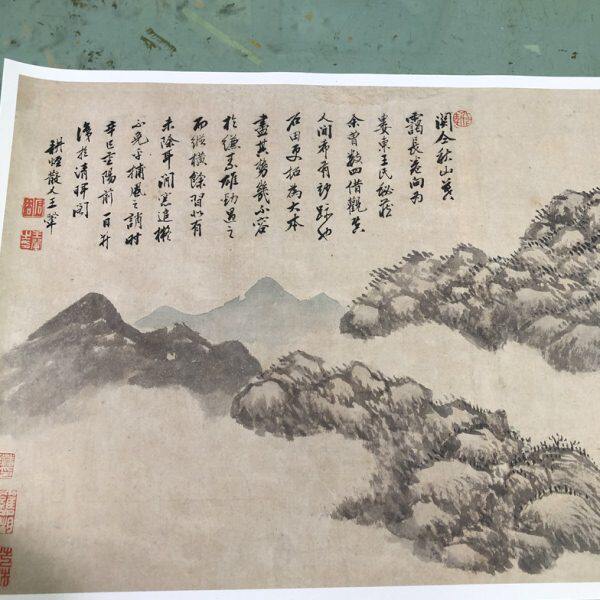 清 秋山暮霭 山水画长卷国画艺术微喷古代名画复制品装 饰画 王翚