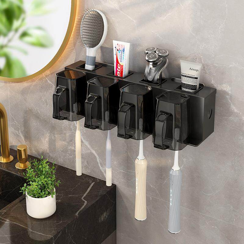 直销新款 电动 牙刷杯架置物架免打孔卫生间漱口杯刷牙杯收纳壁挂式