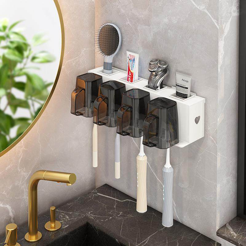 免打孔卫生间牙具座牙膏收纳浴室 牙刷牙杯壁挂置物架电动牙刷套装