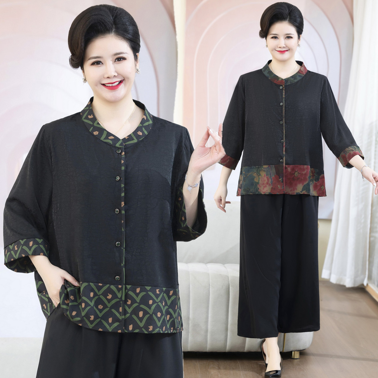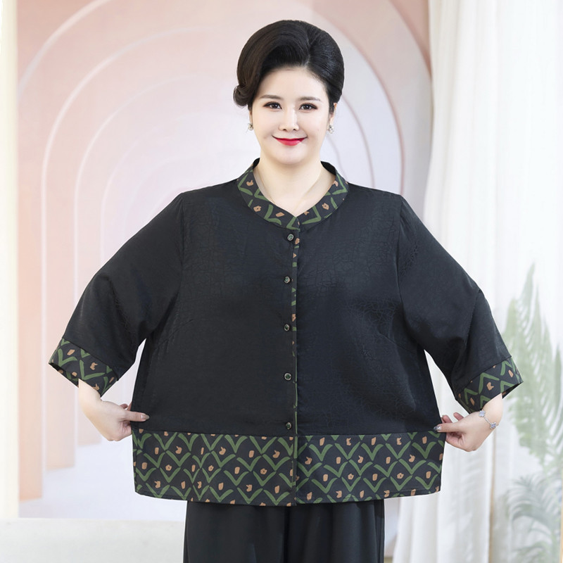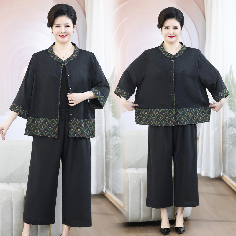 短袖 胖妈妈夏装 两件套 香云纱上衣加肥大码 开衫 套装 洋气中老年女装由