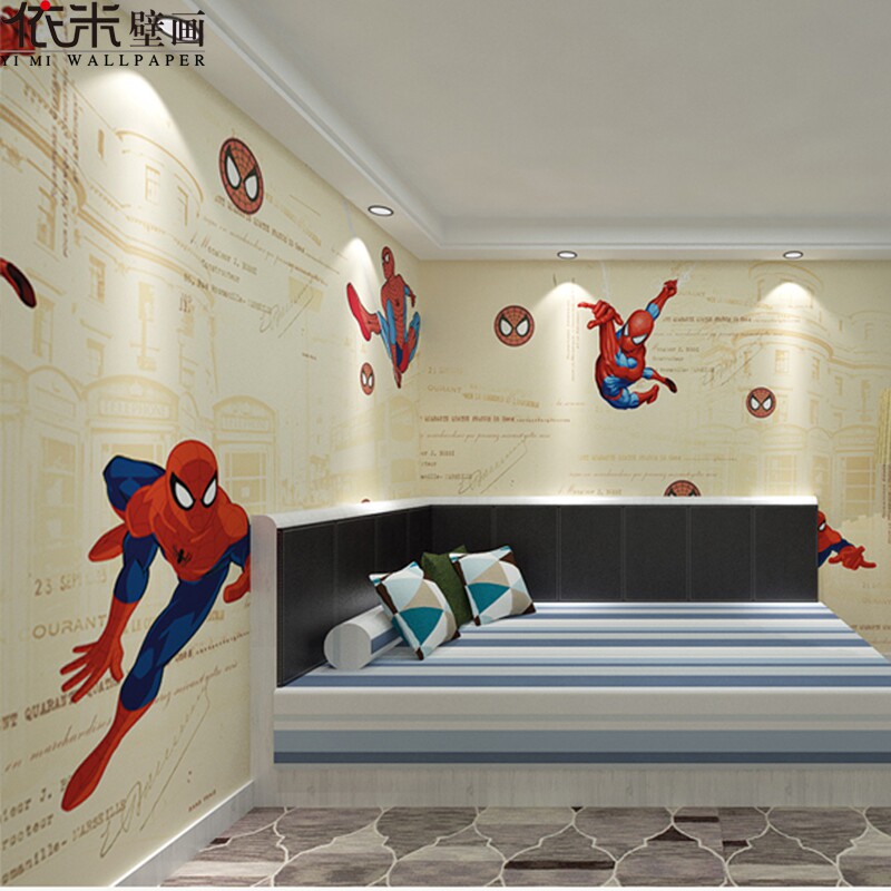 全屋定制3d立体卡通大型8d壁画超凡蜘蛛侠壁纸男孩儿童房墙纸墙布由