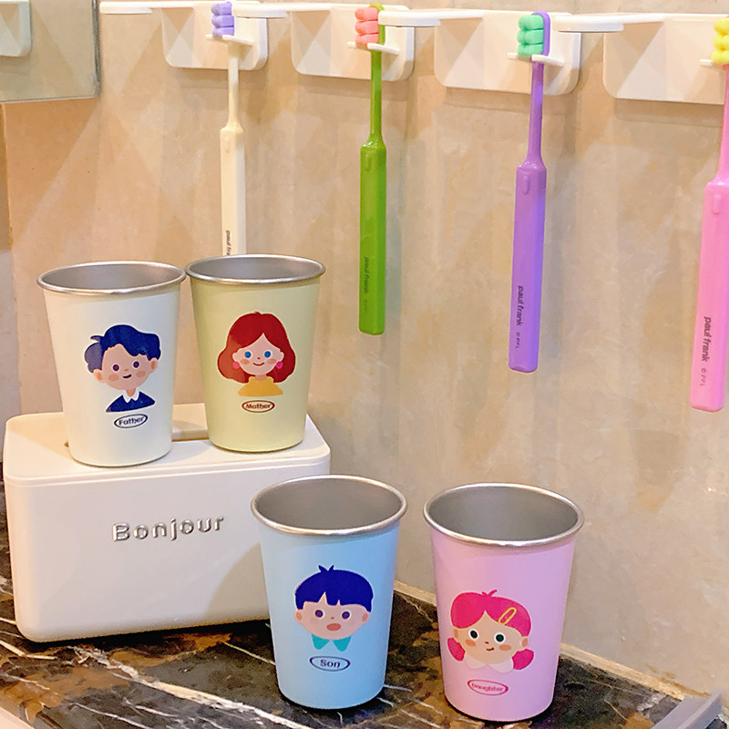 304不锈钢阶梯原创卡通小狗家族洗漱杯简约家用高颜值情侣漱口杯