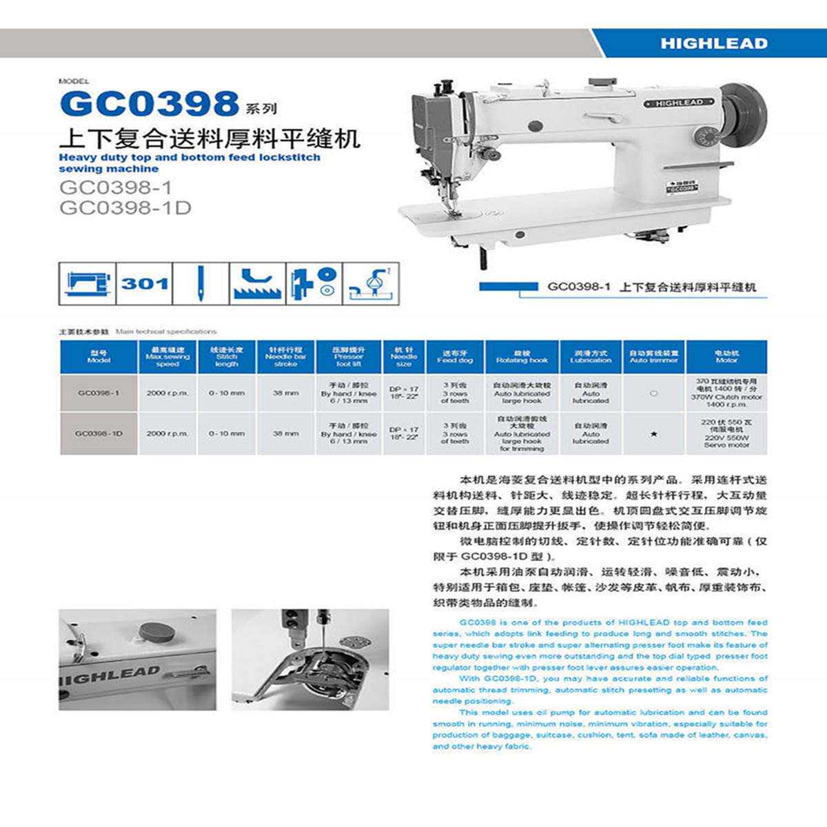 为您提供商品1上下复合送料厚料平缝机 海菱GC0398的详细介绍,