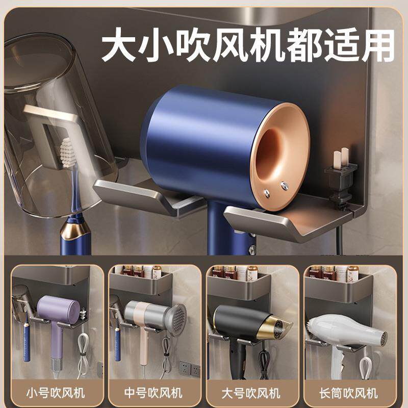 漱口杯牙具架子 枪灰牙刷置物架电动吹风机支架卫生间免打孔壁挂式