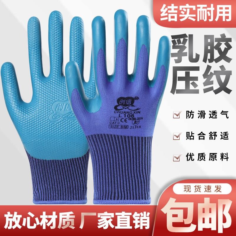创信L108耐磨劳保手套工作工地干活透气防滑防油乳胶胶皮压纹手套