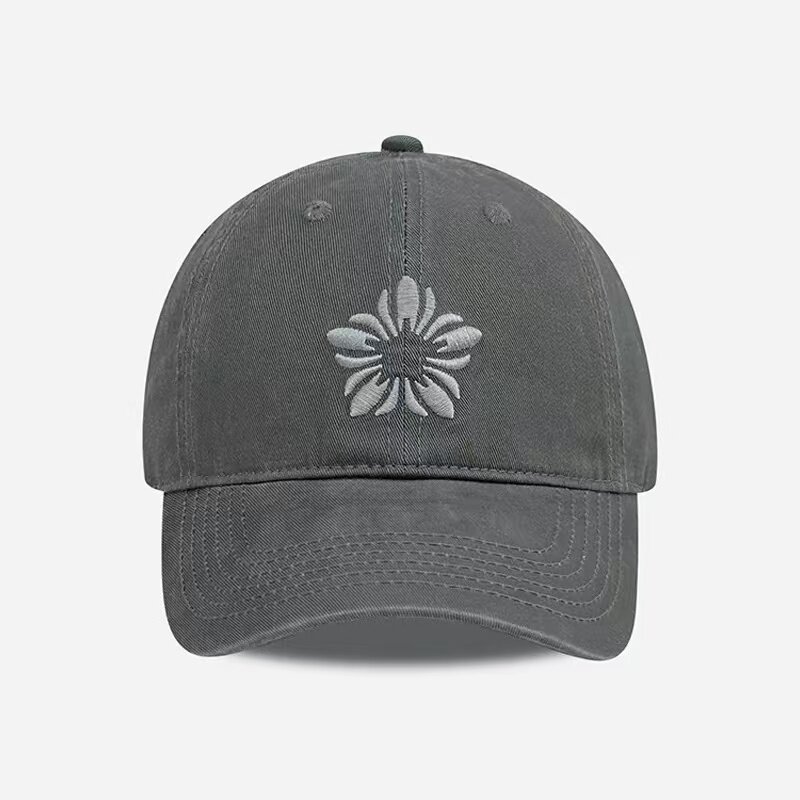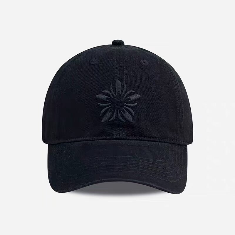 张元 韩国小众潮韩太阳花刺绣棒球帽女大头显脸小鸭舌帽子 英同款由