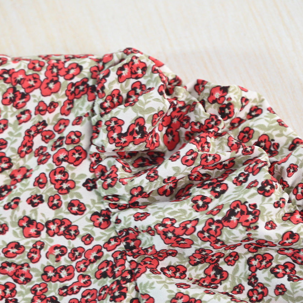 安妮不火 不规则长裙子 碎花荷叶边V领雪纺度假连衣裙女春微胖大码