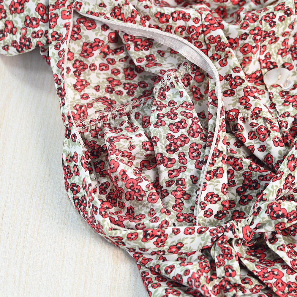 Hotdog 花落梦夕 收腰显瘦V领木耳边繁花长袖 连衣裙 热狗很辣