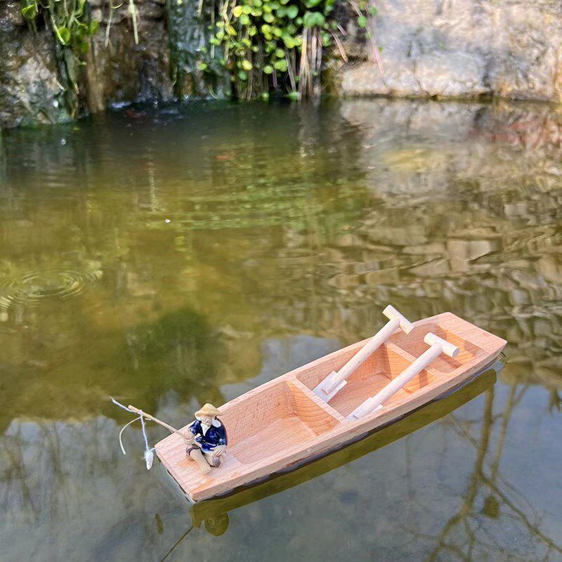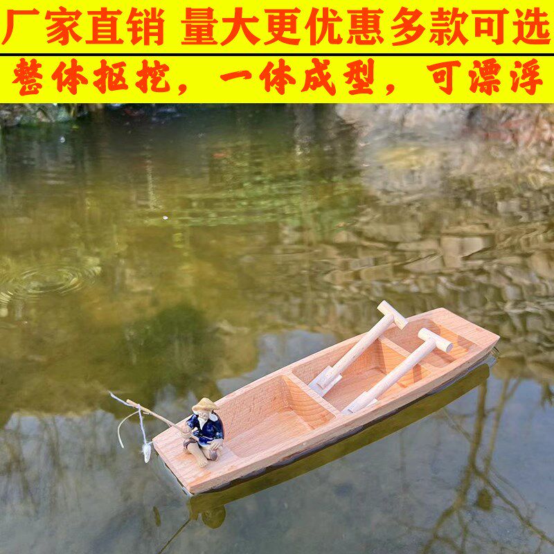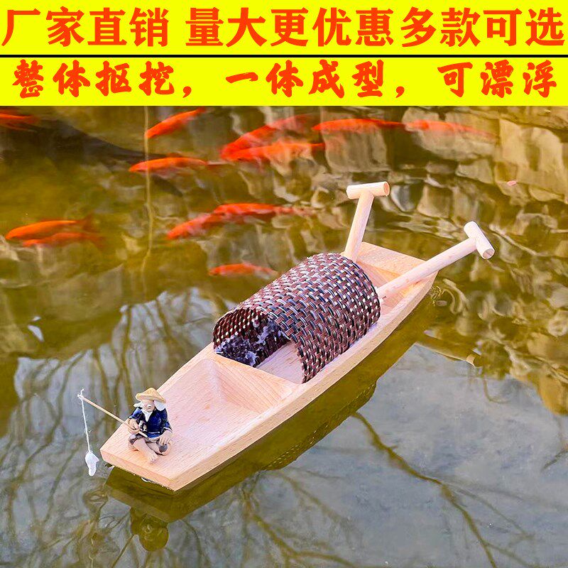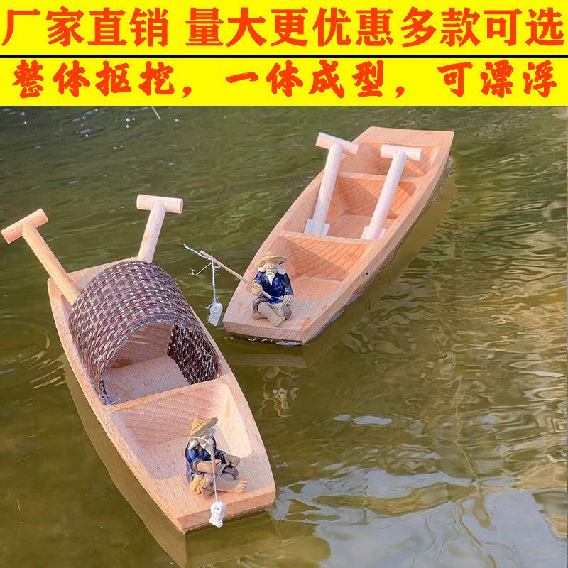 饰摆件下水鱼缸造 木质工艺品漂浮木船手工实木渔船乌篷船模M型装由