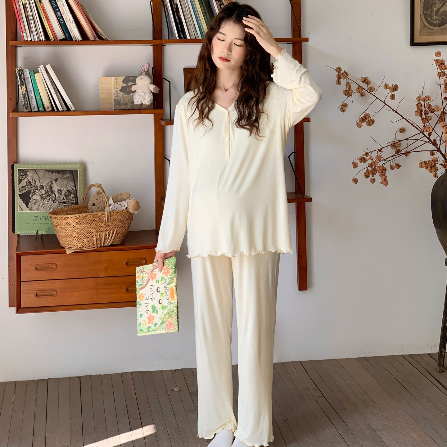 十月结晶月子服孕产妇胸垫哺乳睡衣产后纯棉怀孕期家居服套装 春季