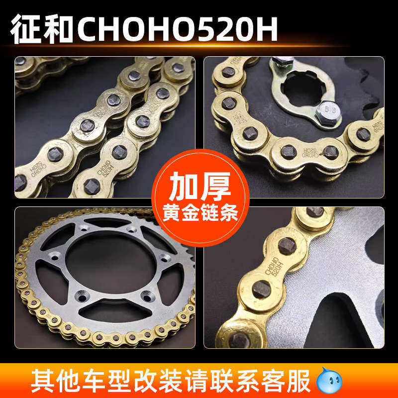 摩托链条华洋T4正林MX6 CQR越野摩托车520加厚套链大小飞牙盘由