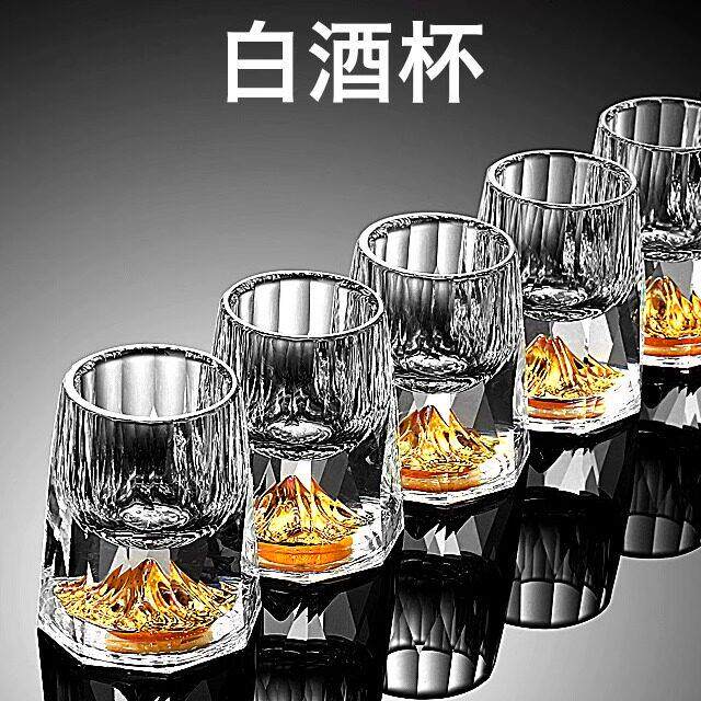 小酒杯新款 创意高颜值宝石纹冰山底浮雕一口小白酒杯 6只装