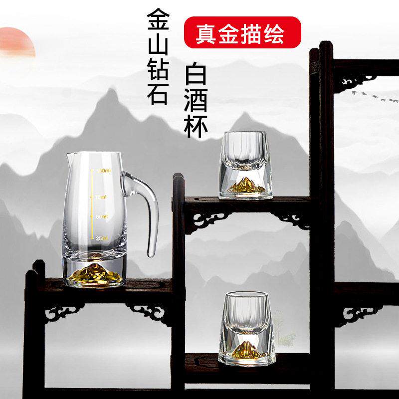 钢化玻璃杯2两4两杯烈酒杯子 描金二两白酒杯带刻度高档酒具套装