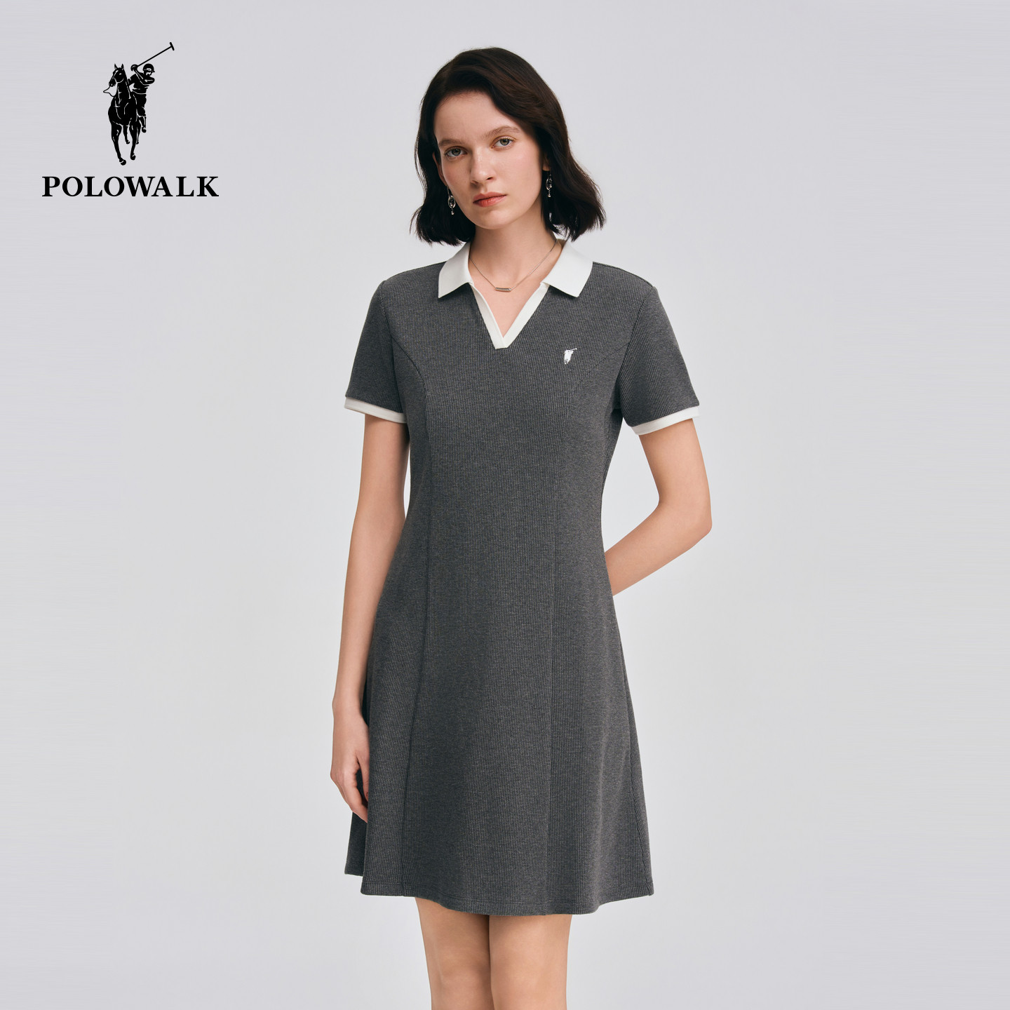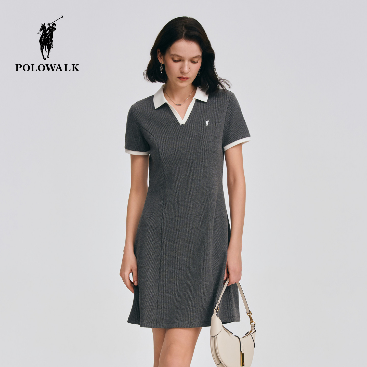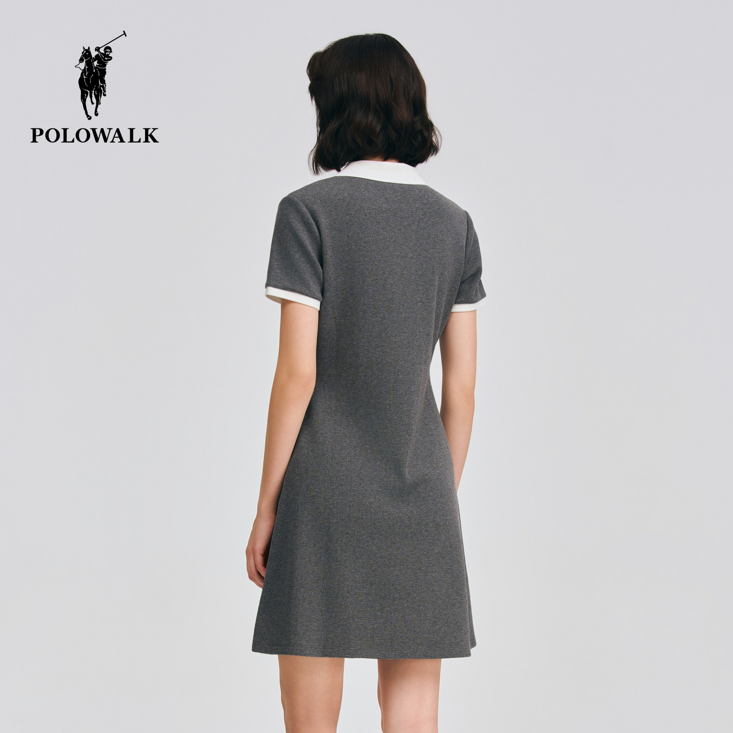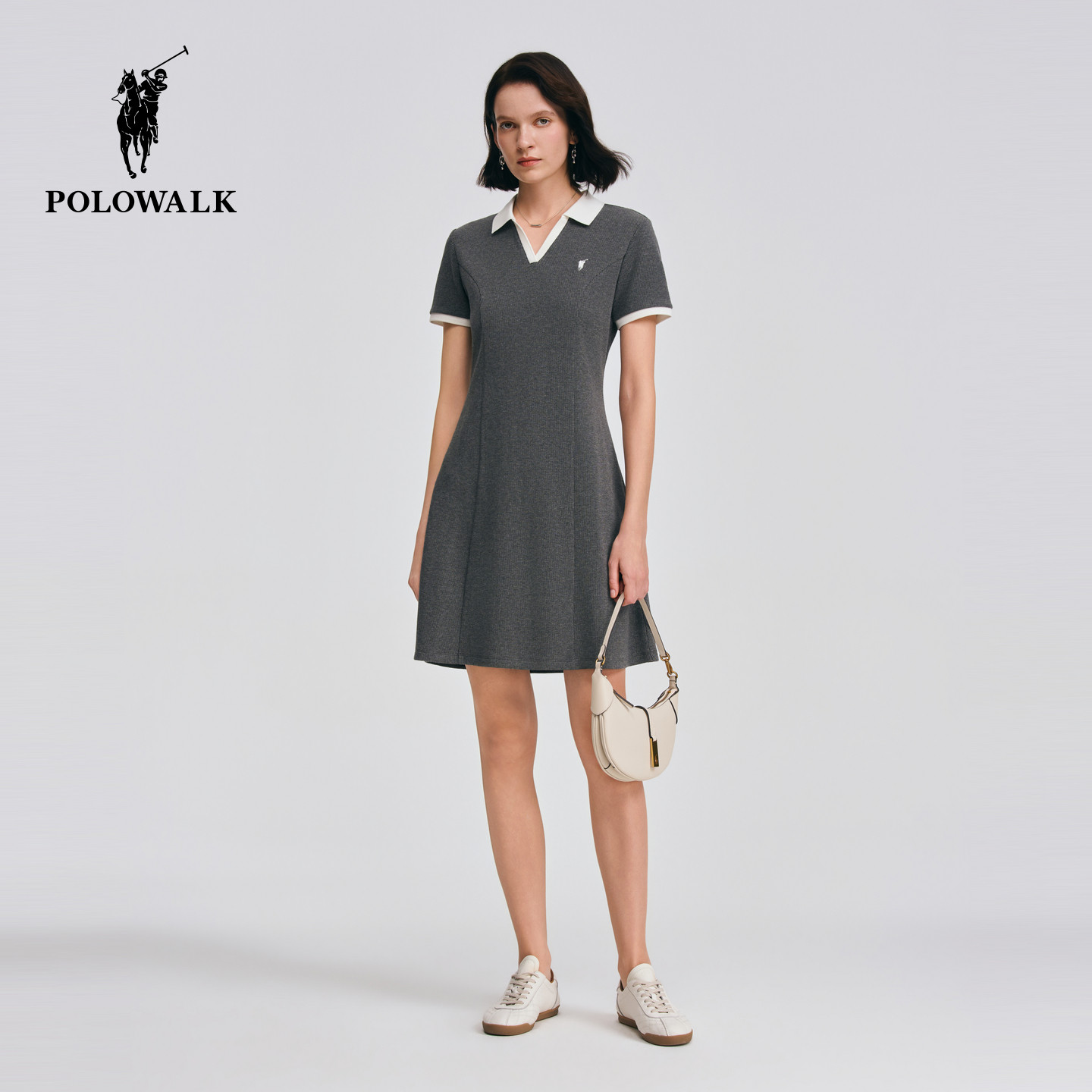 POLOWALK女式 连衣裙2026春季 新品 撞色polo领收腰针织连衣裙 短袖