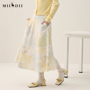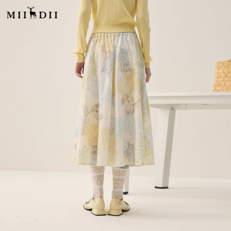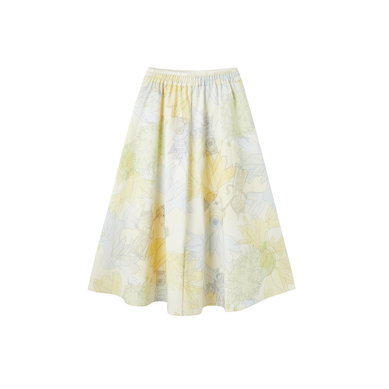 谜底印花半裙2026春季 彩铅橡筋腰温柔浪漫中长裙女261MB0212 新品