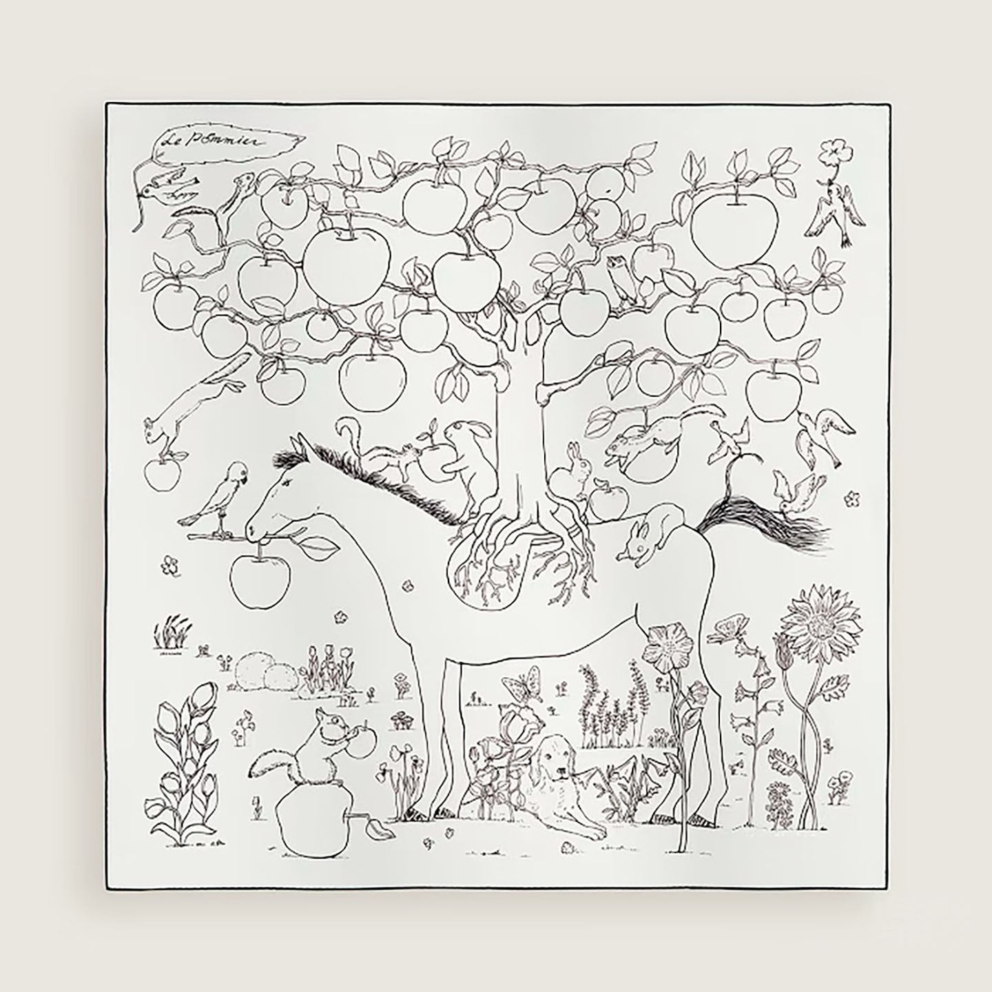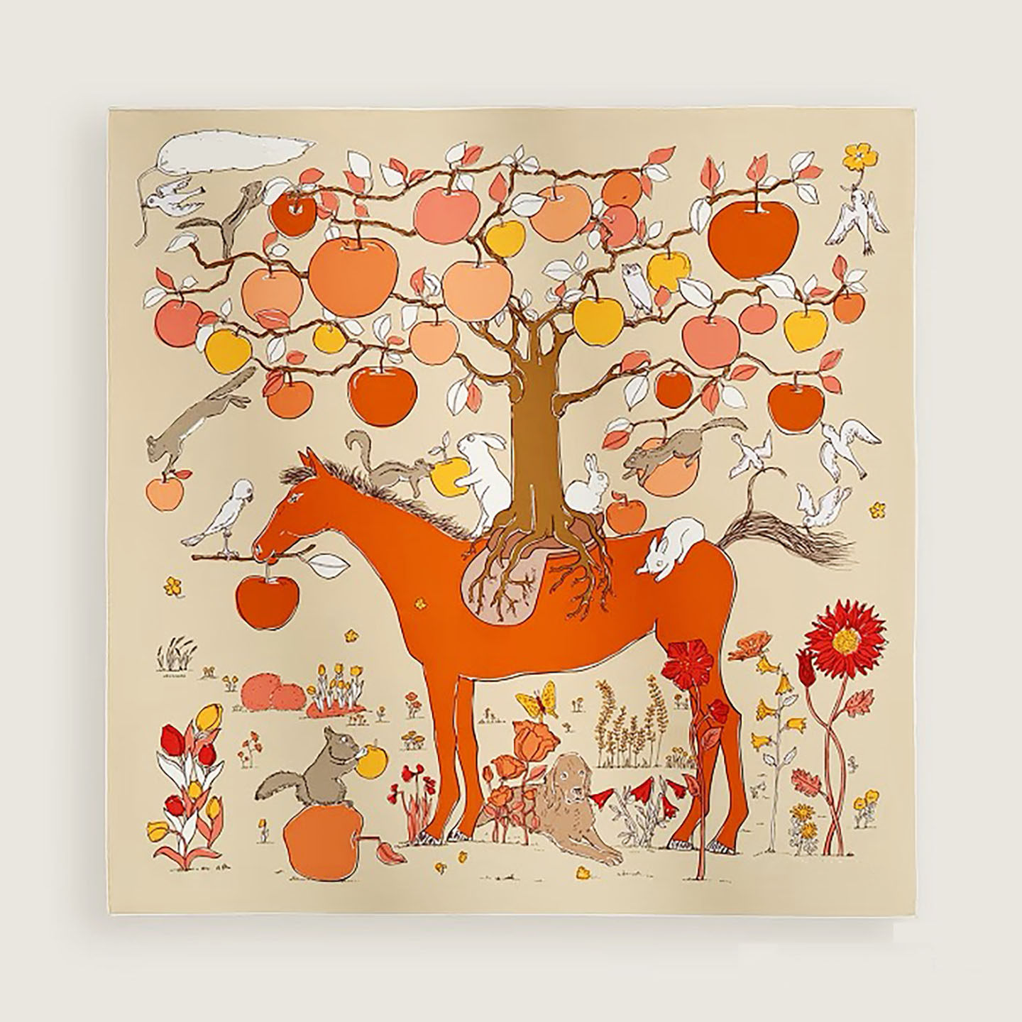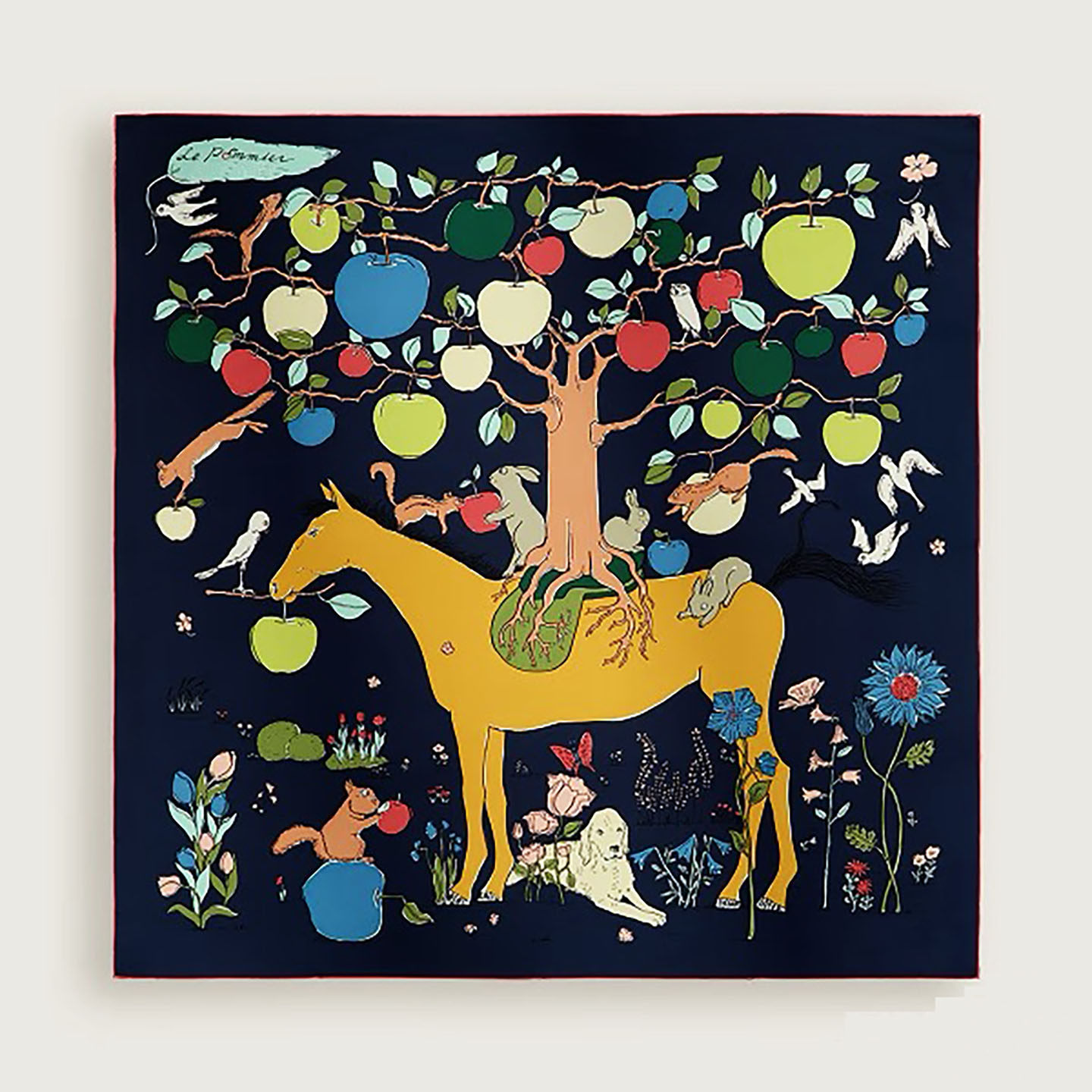 原版 纯真丝90大方巾桑蚕丝巾披肩裱框围巾 马鞍上苹果树 H26年新款由