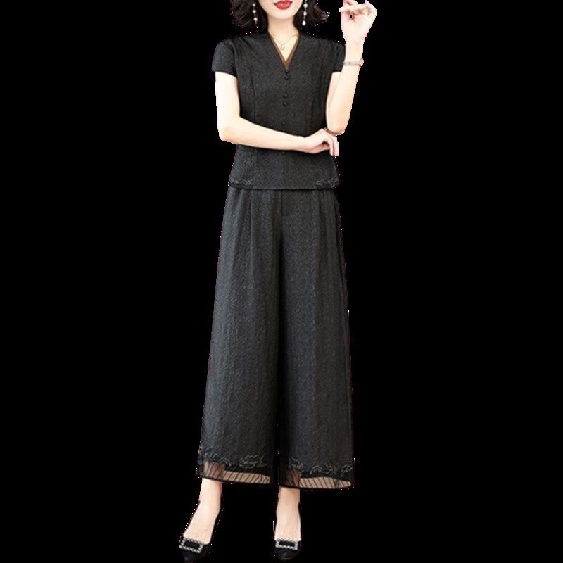 女气质显瘦遮肚子妈Q妈装 2024年夏季 新款 香云纱套装 两件套 阔腿裤