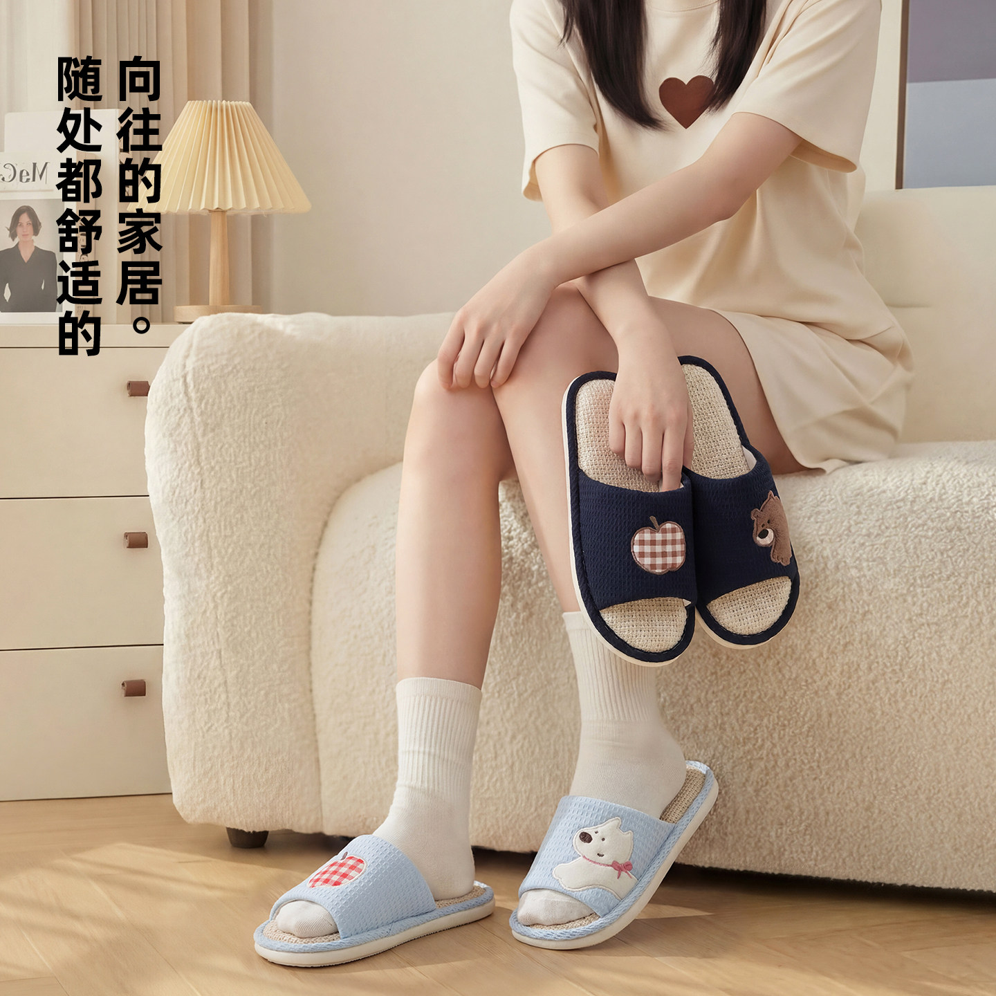 男士 利达妮四季 夏室内家居家卡通防滑亚麻凉拖鞋 2026新款 拖鞋 女款