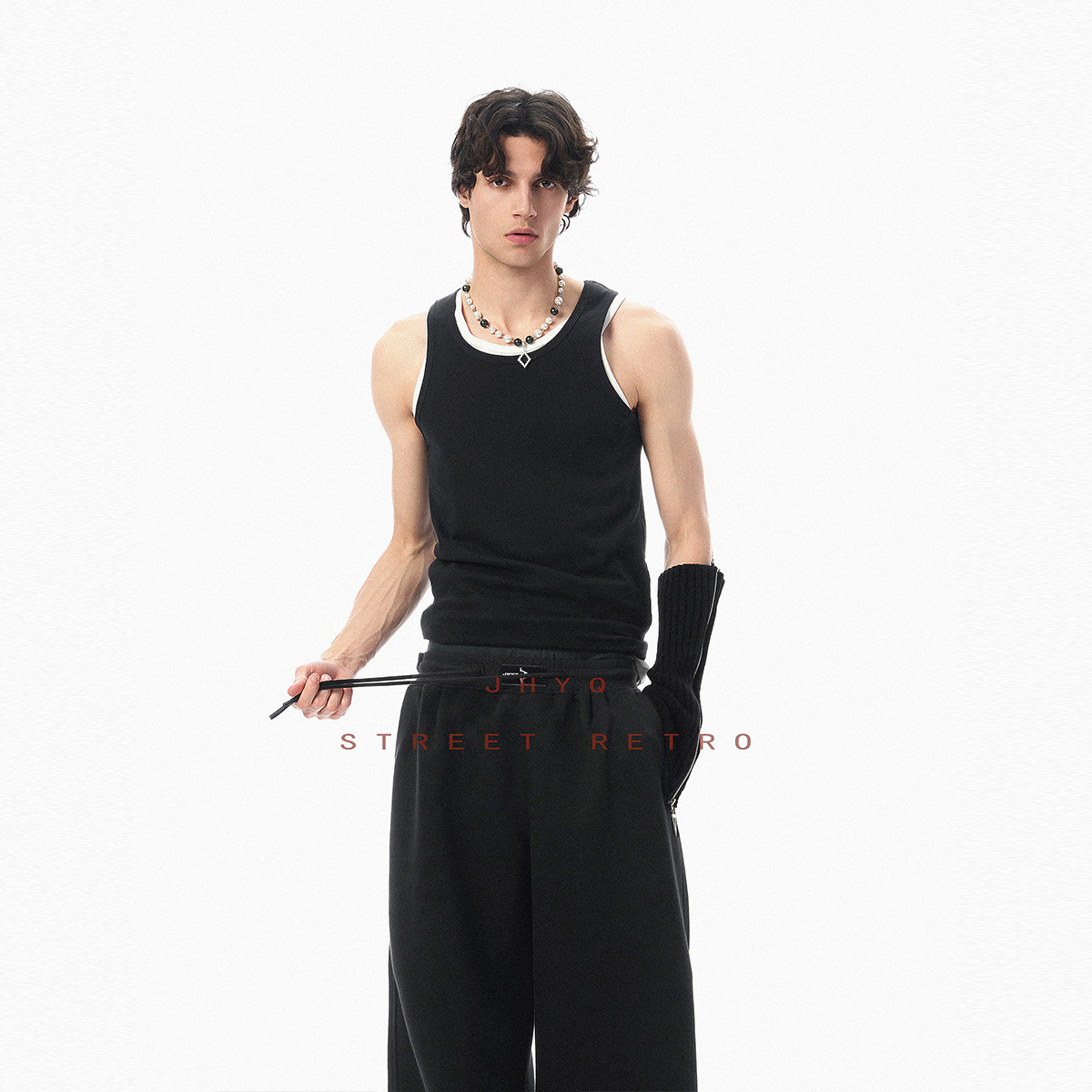 JHYQ纯色打底衫 坎肩棉打底汗衫 健身弹力内搭无袖 背心男夏季