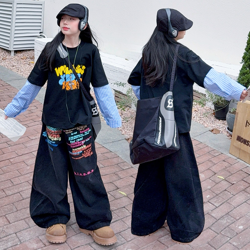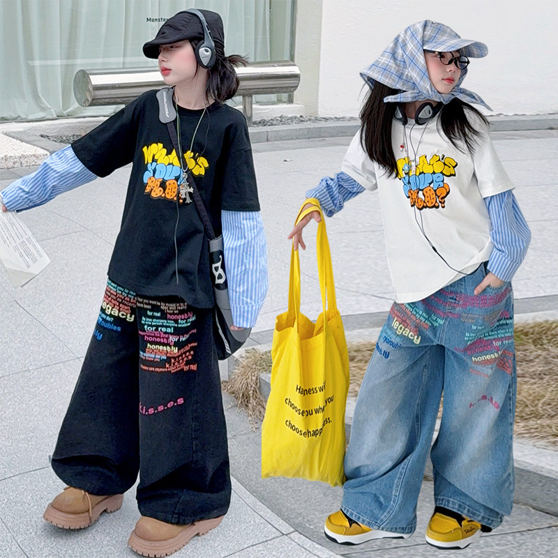 假二件上衣街舞嘻哈hiphop打歌服演出服宽松T恤女童潮 宋雨琦同款由