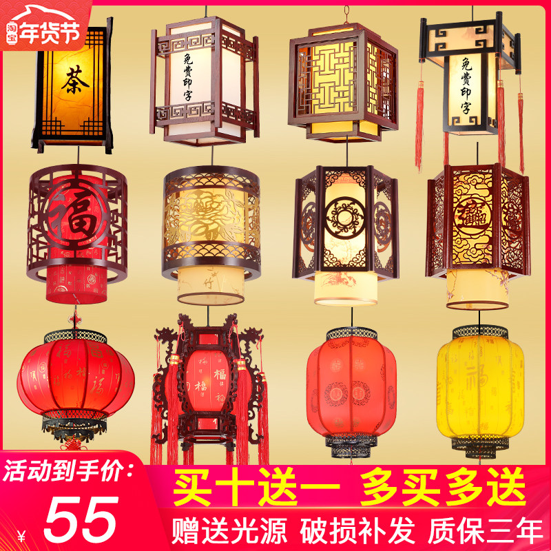 木艺小吊灯中国风古典餐厅饭厅阳台复古茶楼仿古火锅店灯灯笼 中式由