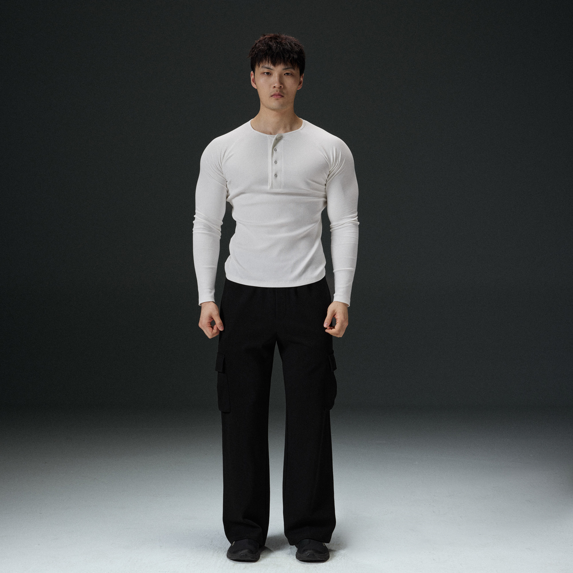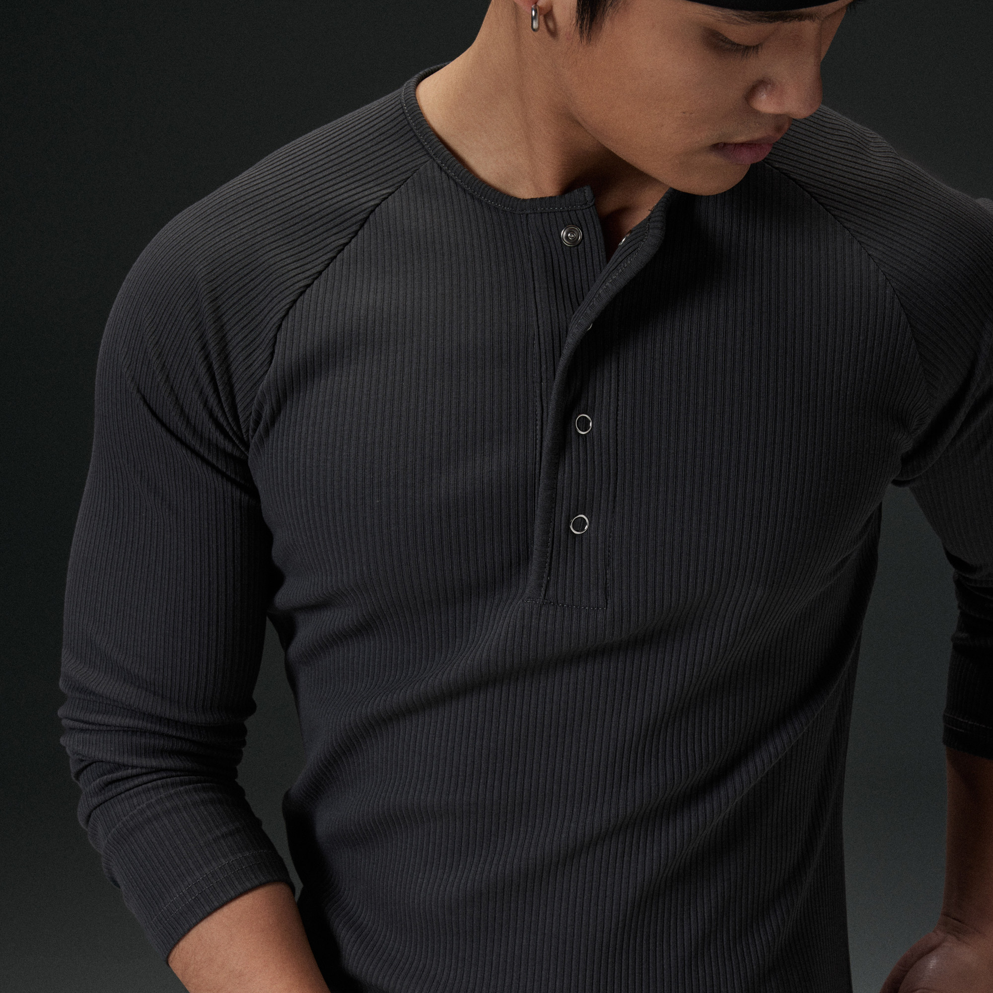 AFTERGLOW坑条肌理亨利领修身 显身材高弹面料男装 打底长袖 长袖由