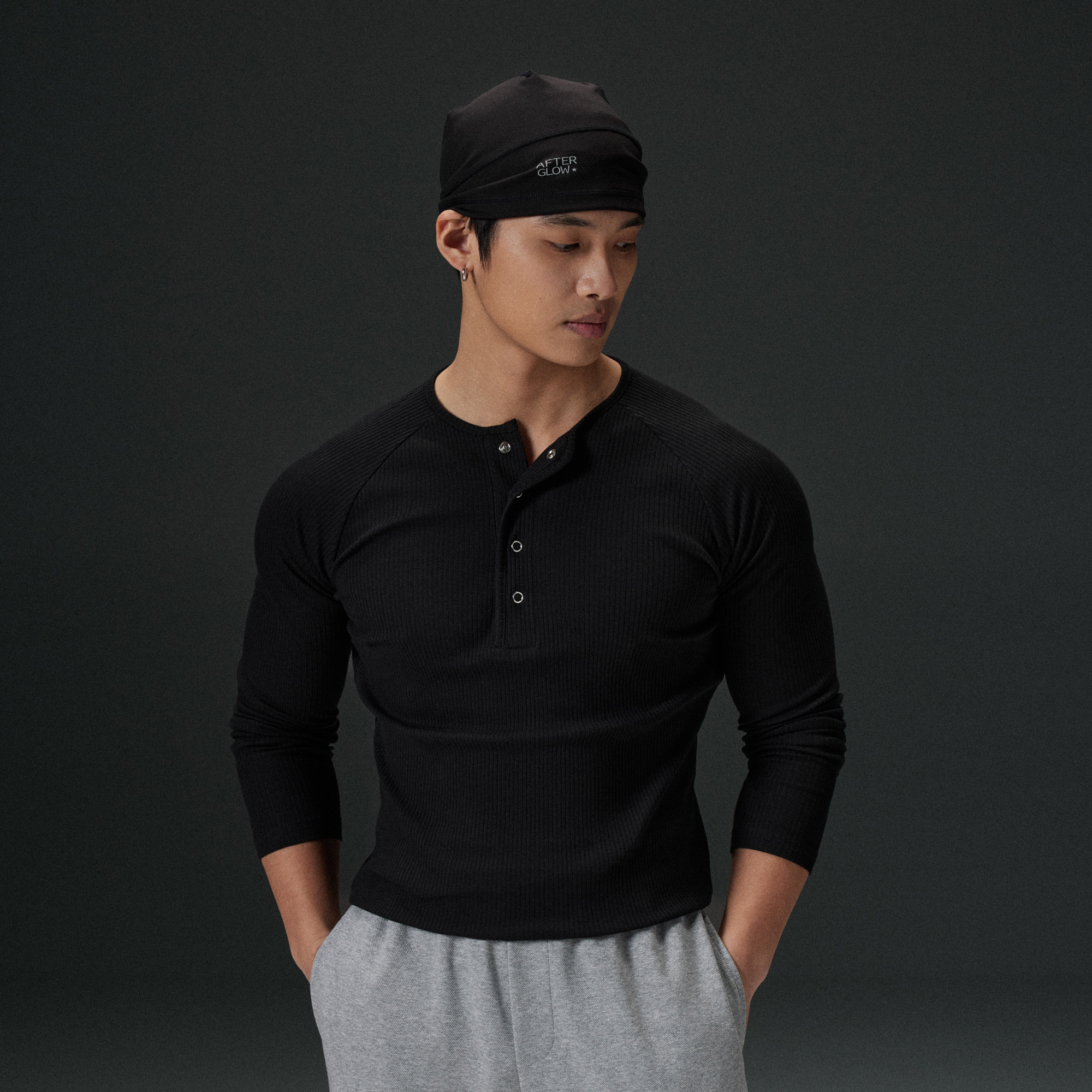AFTERGLOW坑条肌理亨利领修身 显身材高弹面料男装 打底长袖 长袖